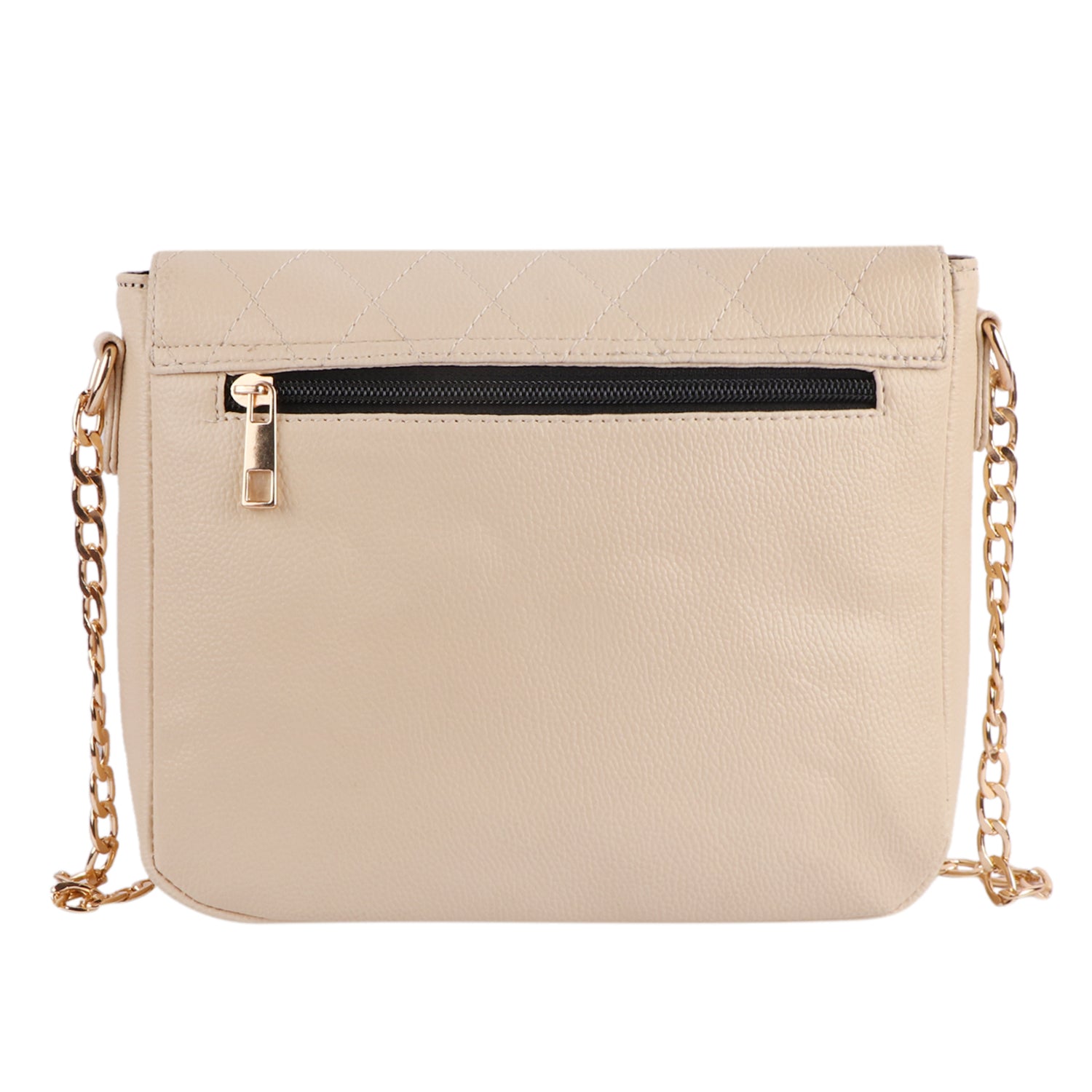 Its soft beige hue, quilted texture, and gold chain strap make it your go-to companion for brunch dates, office hours, and evening outings. Whether worn crossbody or on your shoulder, it adds an instant touch of luxury to any outfit.