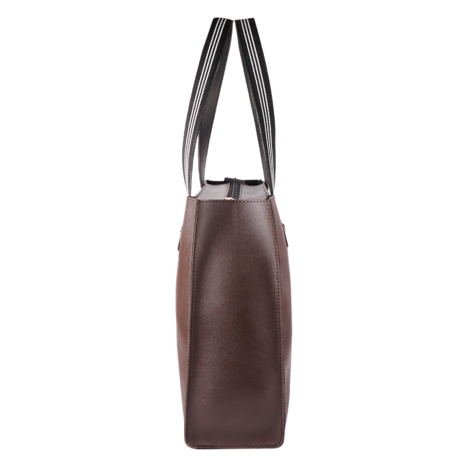 Crafted from premium vegan leather, this elegant brown tote is soft to the touch, durable, and cruelty-free. The structured silhouette with clean edges, double-stitched handles, and gold-tone detailing add a touch of refined charm, making it ideal for both office and casual outings.