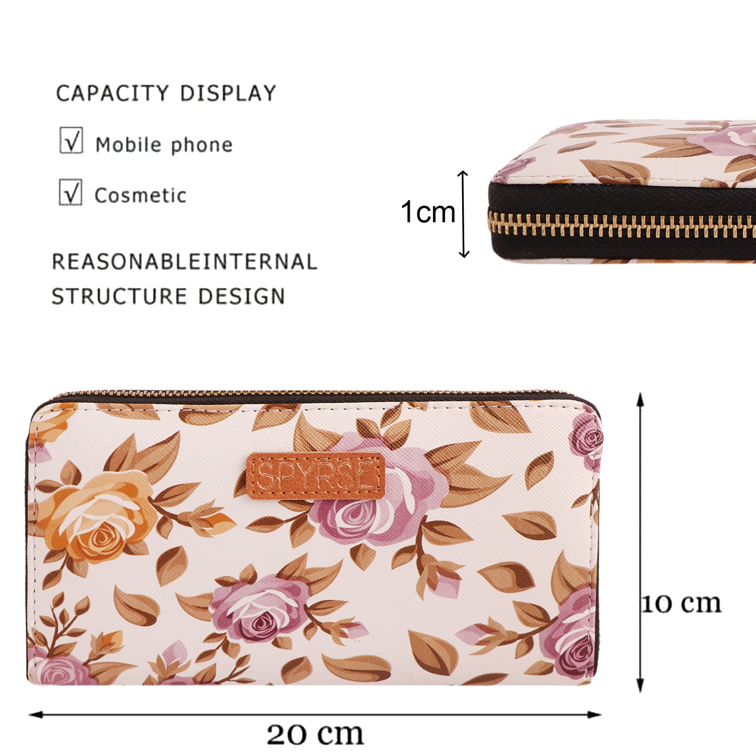 Step into effortless elegance with the Spyrse Floral Bloom Clutch — a statement accessory crafted for women who love timeless florals and cruelty-free fashion. Made from premium vegan leather, this clutch showcases delicate rose prints in soft lavender, peach, and gold tones that exude sophistication and grace.