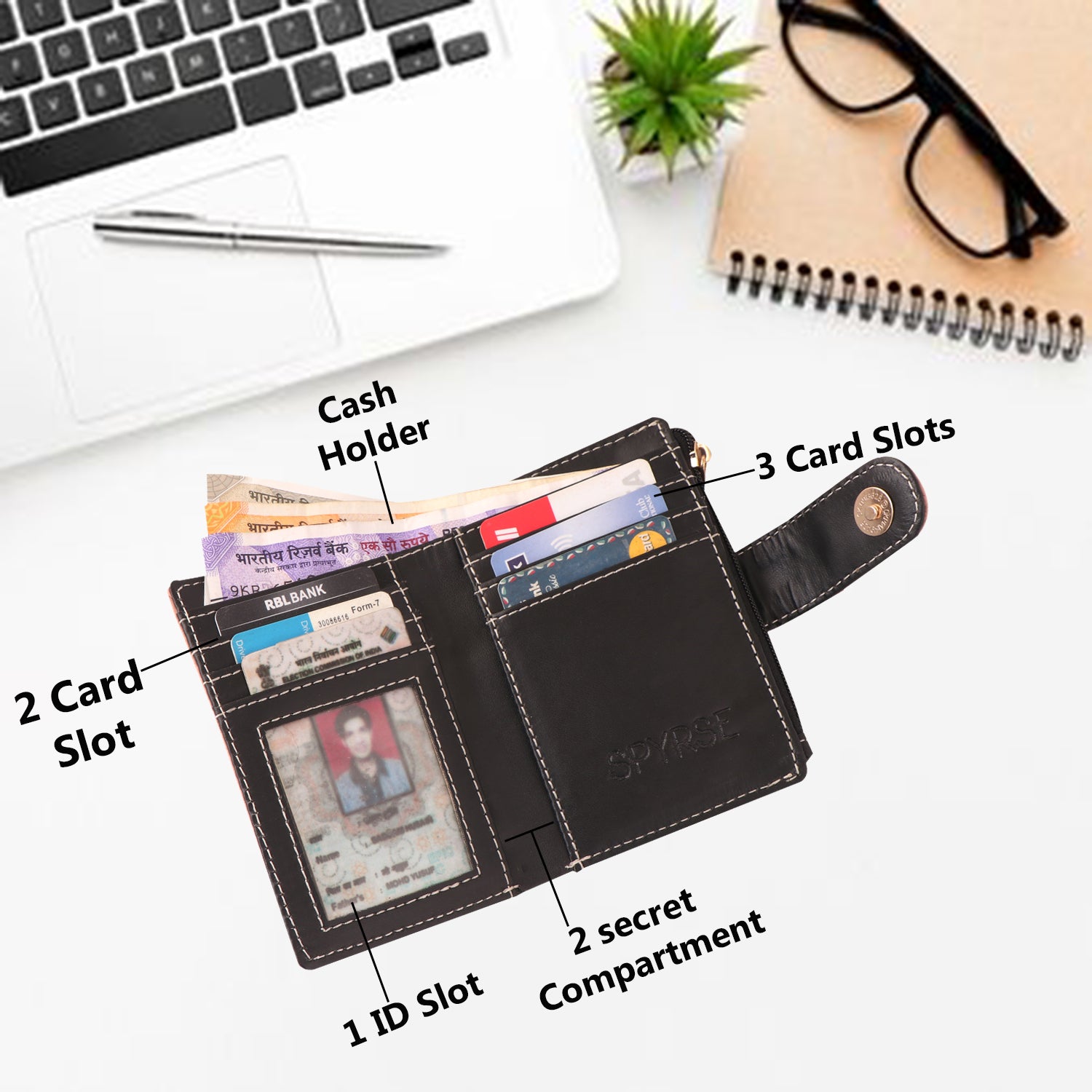 - ✔ Organized Interior – 6 card slots, 1 ID window, 2 secret compartments & 1 cash holder