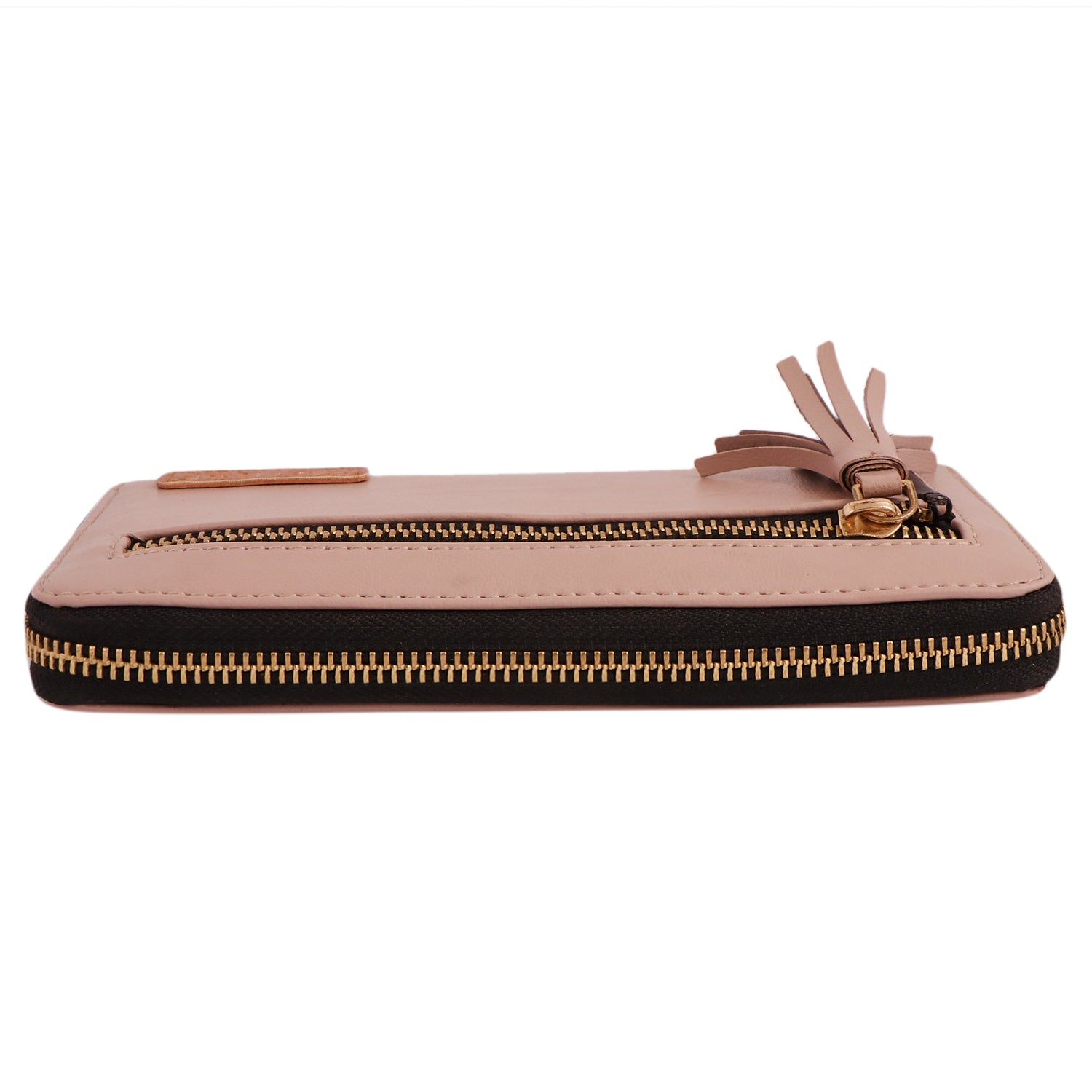 - Stylish Design: Soft blush pink tone with tassel detailing and gold-tone zip accents for a chic, feminine appeal.