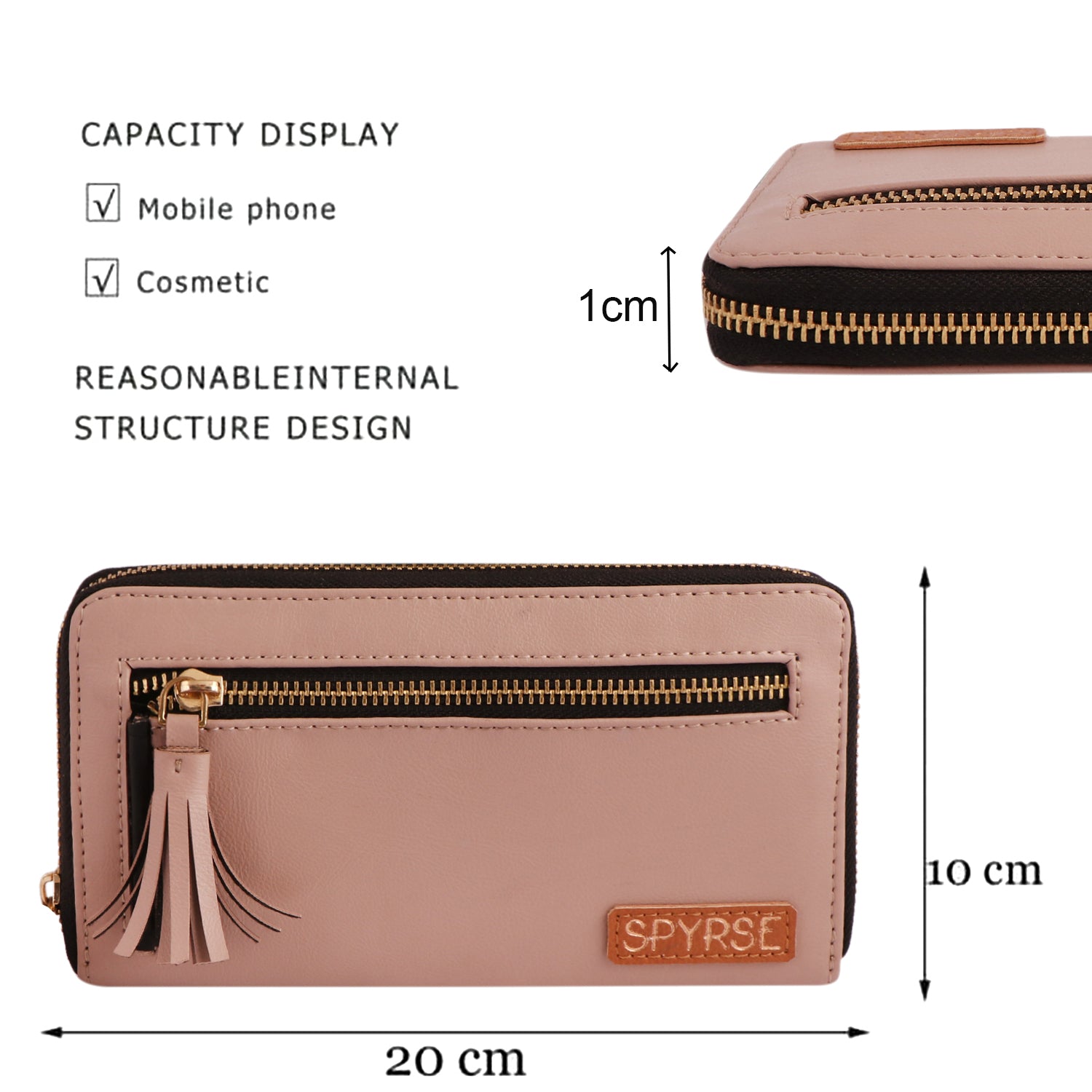 Upgrade your essentials with the Spyrse Women’s Blush Pink Vegan Leather Tassel Clutch – where timeless design meets everyday functionality. Crafted from premium vegan leather, this clutch exudes sophistication while staying eco-conscious.